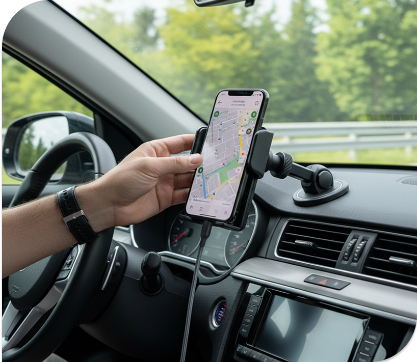 مع حامل السيارة هذا، جوالك يكون في مكانه الصحيح، سهل الوصول والاستخدام بدون ما يشتت انتباهك وانت تسوق.